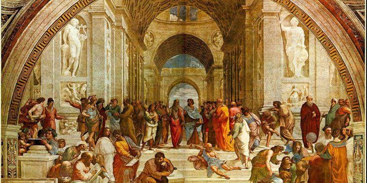 Raphael’in 1510 yılında yaptığı Atina Okulu adlı tablosunda Platon solda ve Aristotales sağda.